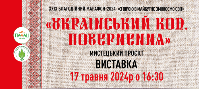 В рамка XXIX Благодійного марафону «З вірою в майбутнє змінюємо світ» відбудеться Мистецький проект-виставка «Український код. Повернення».