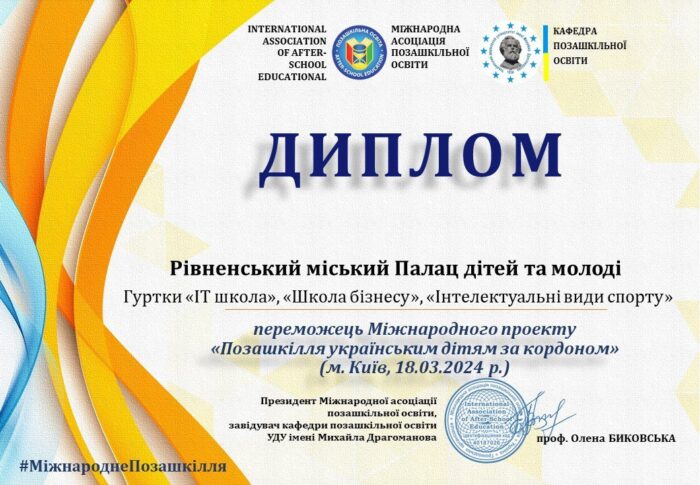 Рівненський ПДМ прийняв участь та став переможцем Міжнародного проекту «Позашкілля українським дітям за кордоном»
