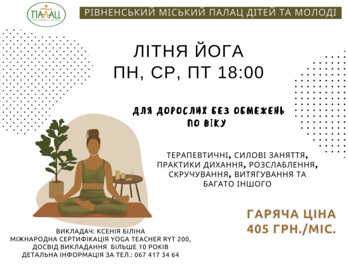 Палац дітей та молоді відкриває нові можливості! Розпочато набір у групи літньої йоги! Перші офіційні згадування про йогу датовані більш ніж 5000 років тому! Вдумайтесь в цю цифру! 5000 років!!!!